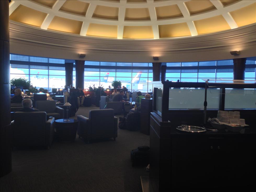 From my limited experience and knowledge, the US Airways Club in Charlotte seems to be one of the better US airline lounges (note: not US Airways lounges, but all US airline lounges).  I don’t have much experience with international lounges, but the ones I have been in blow away the US competition.  The main club had the same food options as the smaller lounge (which was expected, but still a little disappointing), but they do offer you a single complimentary alcoholic drink from the bar.  I chose to hang out in a spot in the small rotunda at the far end of the club that has nice views of the planes.  It was a good way to spend about an hour or so.