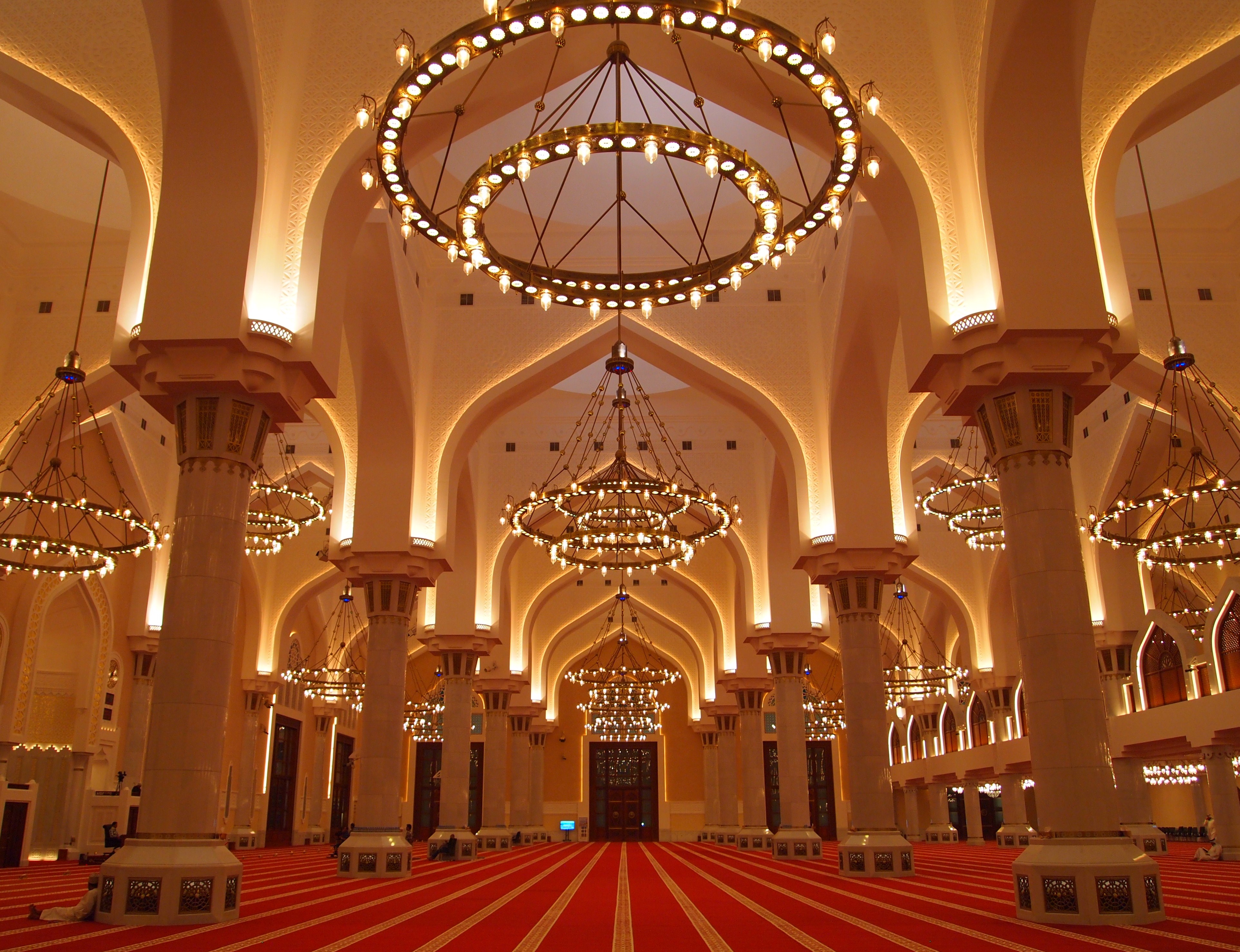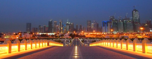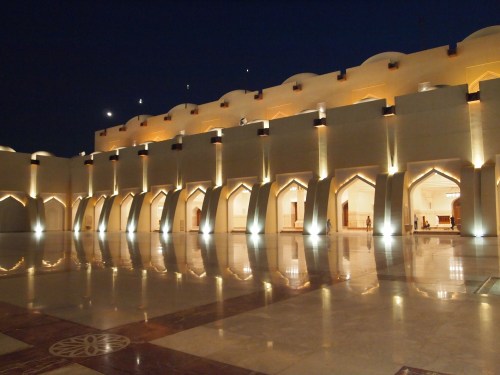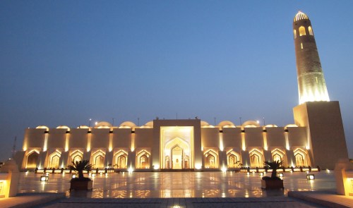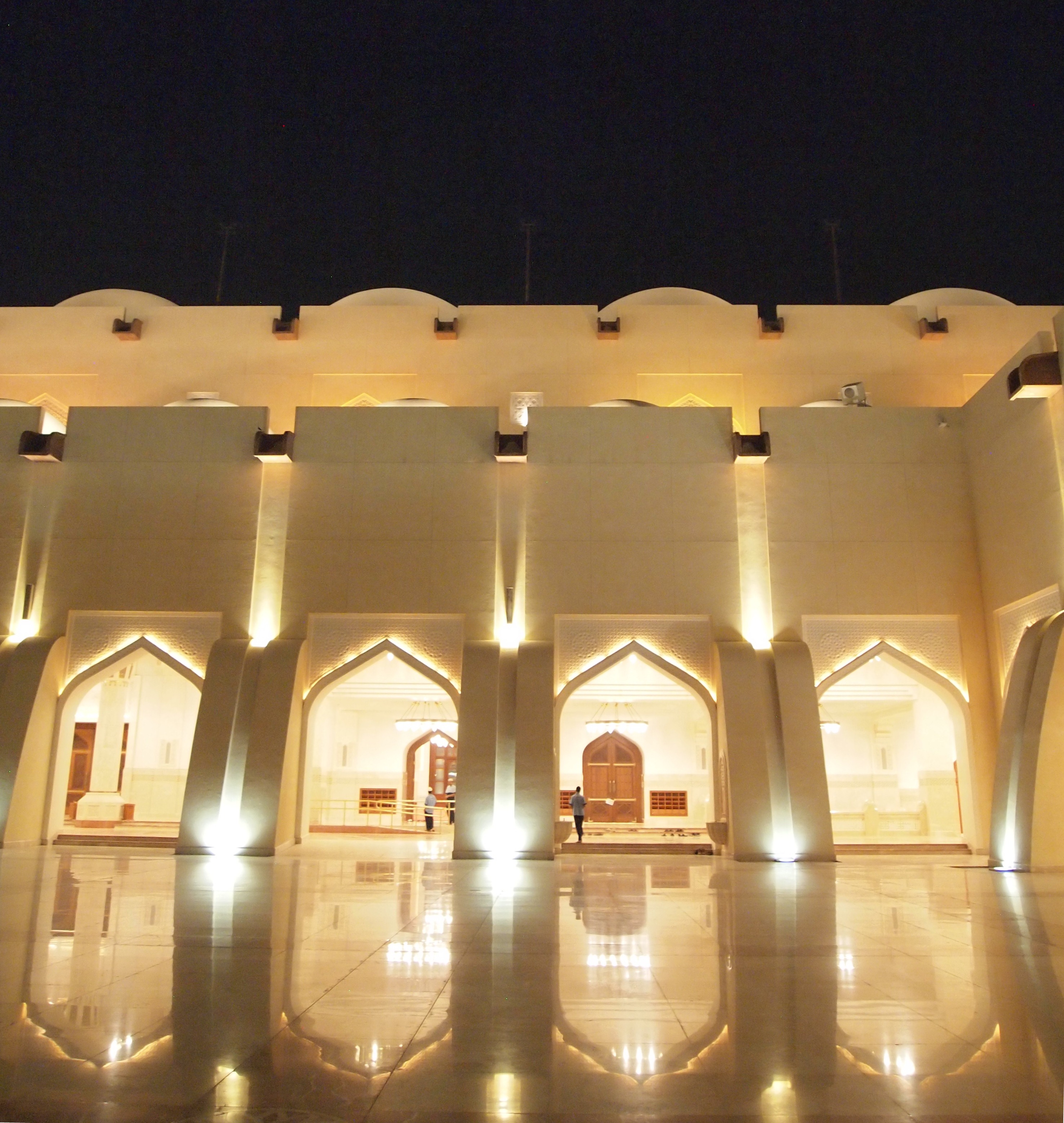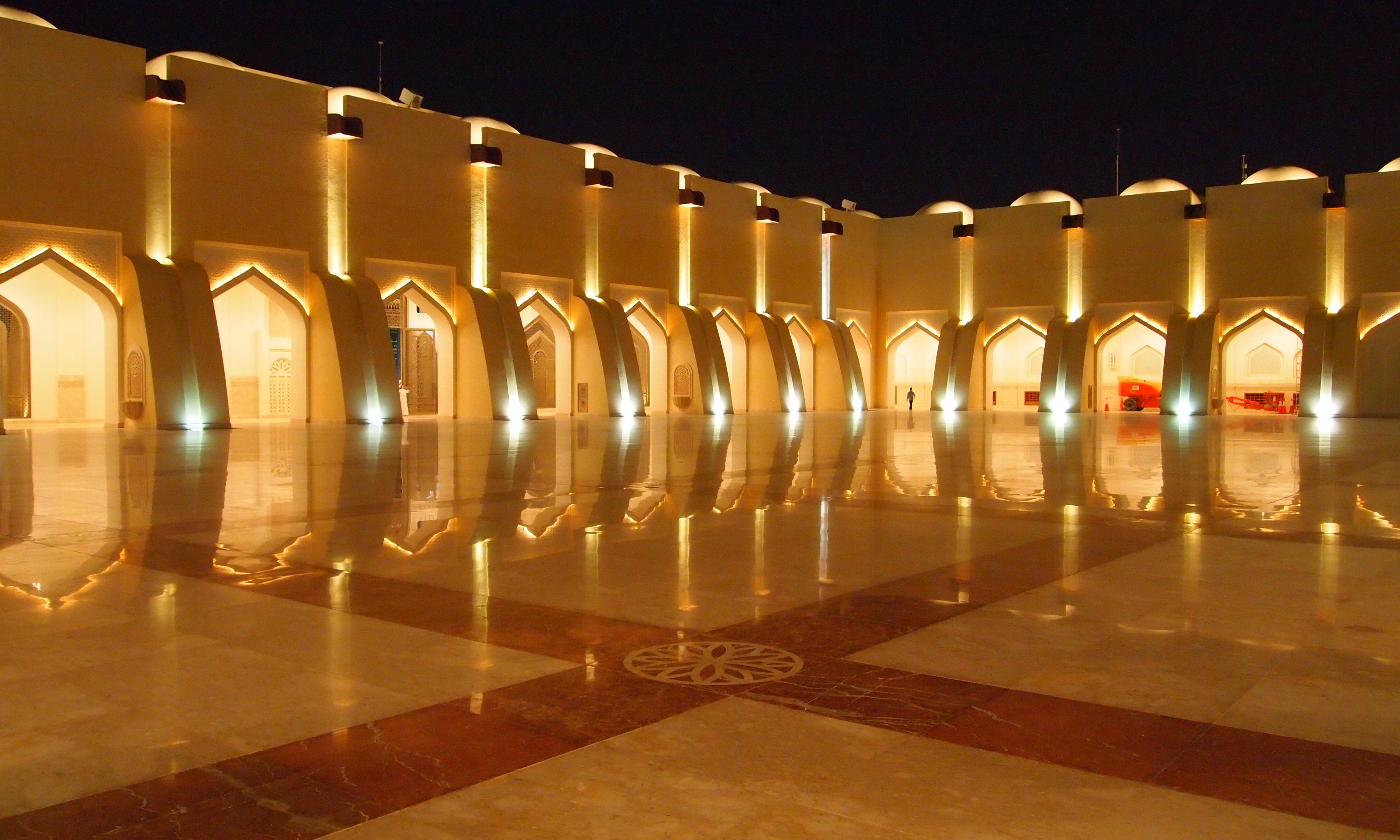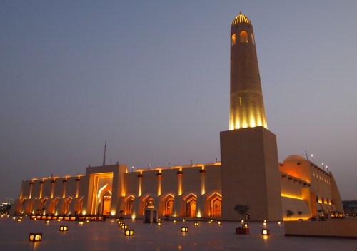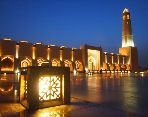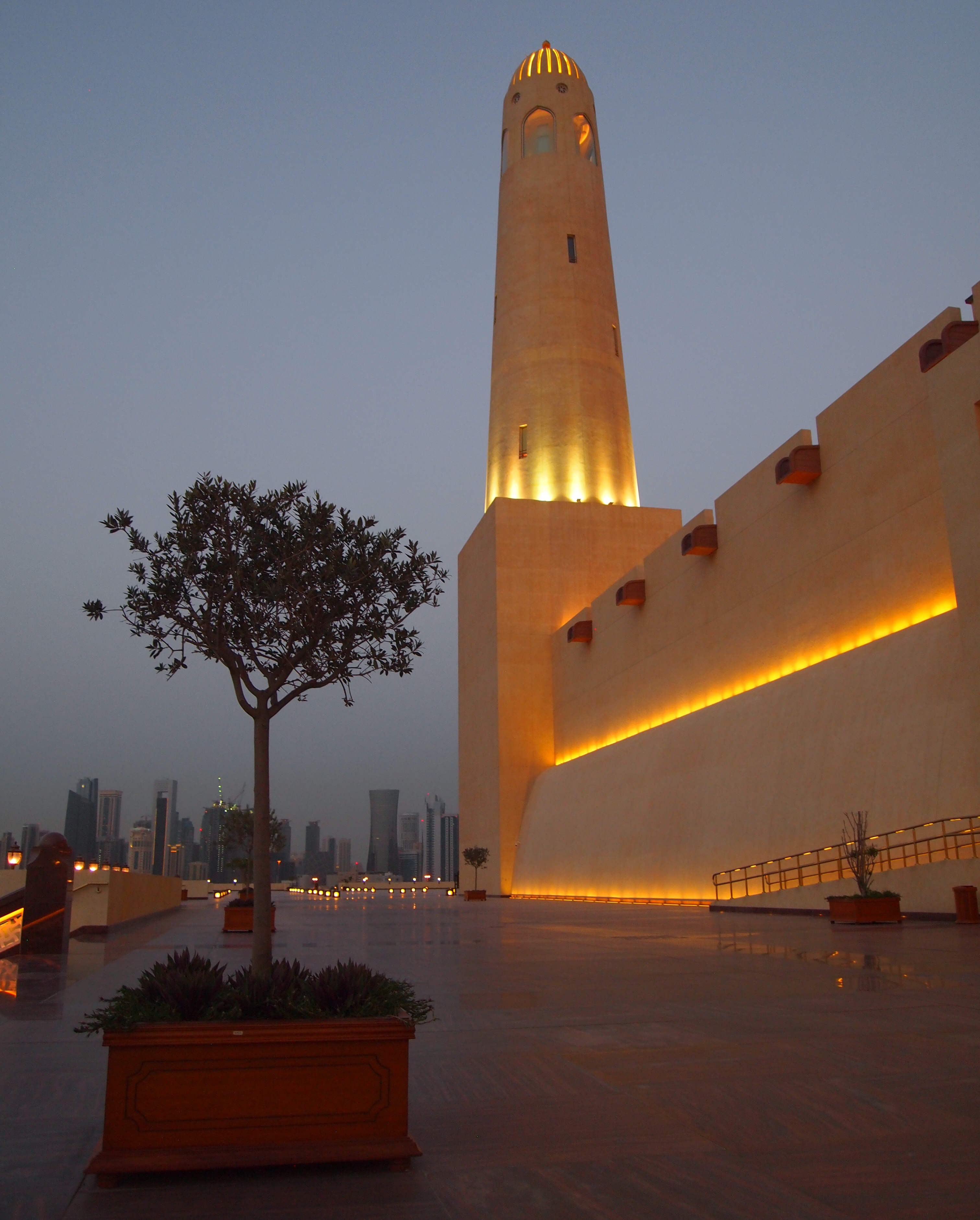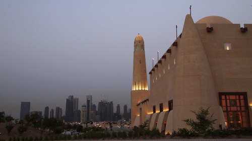 A few nights ago after work I decided I wanted to visit the state mosque of Qatar (aka the Sheikh Muhammad Ibn Abdul Wahhab Mosque) to photograph it. I had driven past it numerous times, and it’s a beautiful building. There was one photograph in particular that I was hoping to get. Although its located a ways from downtown, you can see the skyscrapers located in West Bay in the background if you’re to the East of the mosque looking West. I thought the combination of the traditional architecture of the Middle East with the modern skyscrapers in the background would create a nice contrast.