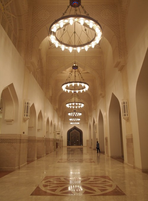 After I had been there a while a man came up and introduced himself to me. His name was Yatif, and he was Pakistani. He asked me if I’d like to go inside to look around and take some pictures. He took me into the courtyard of the mosque and told me a little more about himself and a little about the mosque. The scale of the building is incredible even with just a few people there, but I imagine it’s even more incredible when it’s full. After we made our way around the courtyard, we took off our shoes and made our way into the main prayer hall. As it was in between prayer times few people were there, and Yatif explained more of the Islamic faith to me. It was quite interesting, and I’m really glad he invited me in. Learning about and understanding different cultures is one of the reasons I was excited about moving abroad, and I’m glad I got to enjoy a little of that the other night.