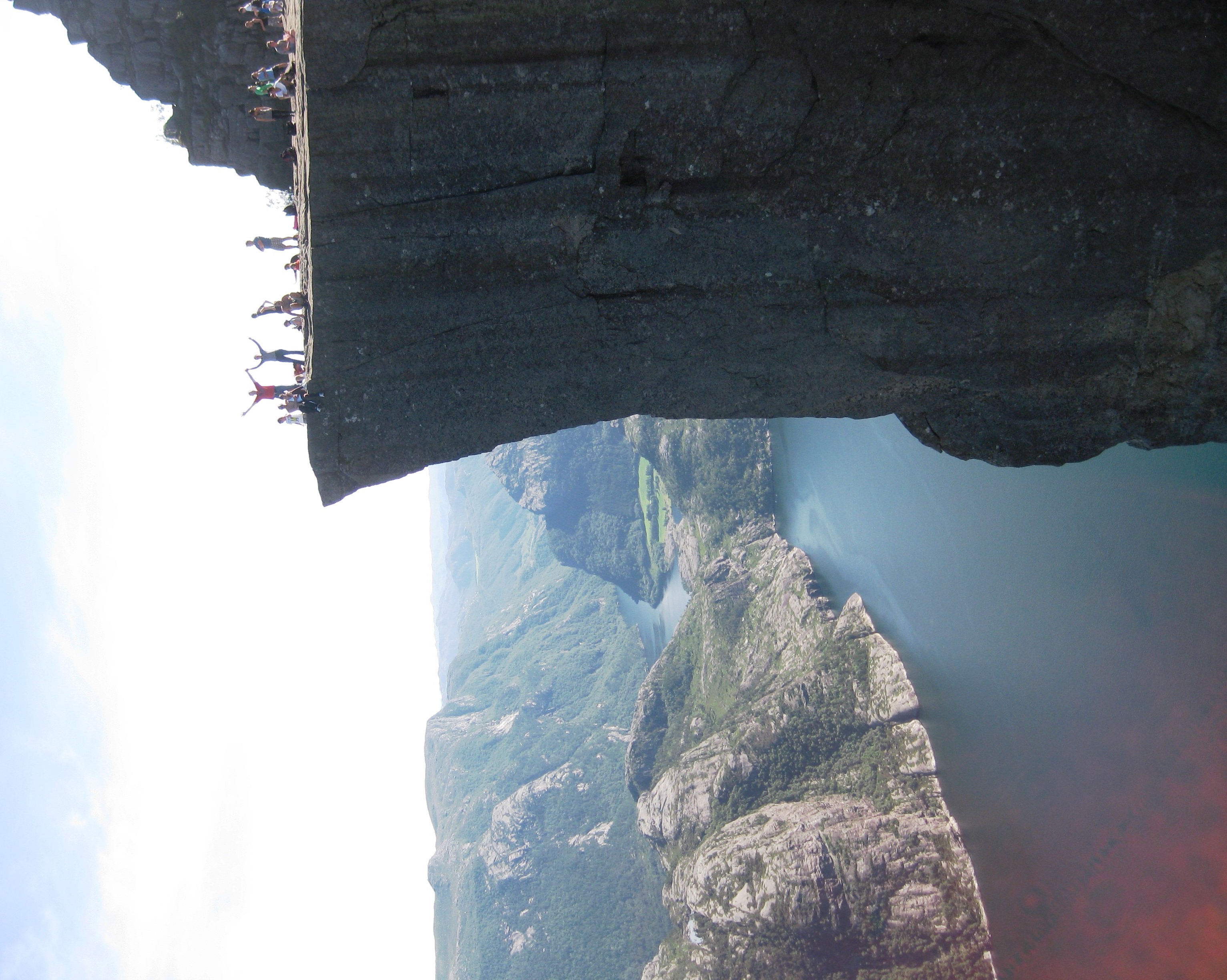 Yeah, that’s us with our arms up in the air on Preikestolen (Pulpit Rock) 1982 feet above Lysefjord below.